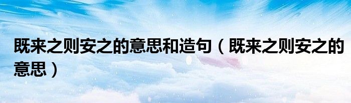 关于既来之则安之的意思和造句,既来之则安之的意思这个很多人还不知道,今天菲菲来为大家解答以上的问题,现在让我们一起来看看吧!
