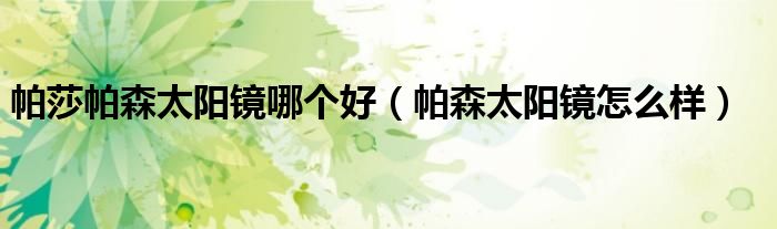 大家好,小晋来为大家解答以下问题,关于帕莎帕森太阳镜哪个好,帕森太阳镜怎么样很多人还不知道,今天让我们一起来看看吧!