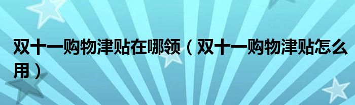 大家好,小飞来为大家解答以上问题,双十一购物津贴在哪领,双十一购物津贴怎么用很多人还不知道,现在让我们一起来看看吧!