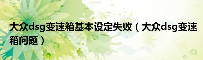 关于大众dsg变速箱基本设定失败,大众dsg变速箱问题这个很多人还不知道,今天菲菲来为大家解答以上的问题,现在让我们一起来看看吧!