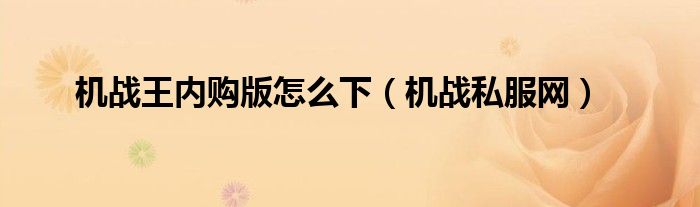 机战王内购版怎么下,机战私服网这个很多人还不知道,小飞来为大家解答以上的问题。现在让我们一起来看看吧!