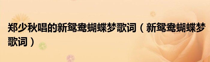 关于郑少秋唱的新鸳鸯蝴蝶梦歌词,新鸳鸯蝴蝶梦歌词这个很多人还不知道,今天菲菲来为大家解答以上的问题,现在让我们一起来看看吧!