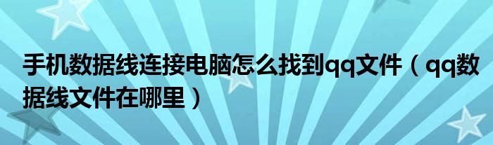 大家好,小飞来为大家解答以上问题,手机数据线连接电脑怎么找到qq文件,qq数据线文件在哪里很多人还不知道,现在让我们一起来看看吧!