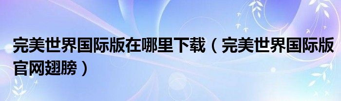 完美世界国际版在哪里下载(完美世界国际版官网翅膀)