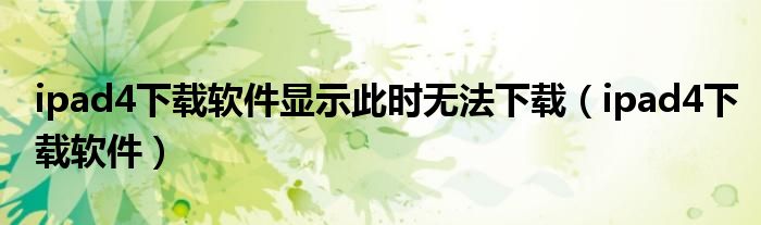 大家好,小飞来为大家解答以上问题,ipad4下载软件显示此时无法下载,ipad4下载软件很多人还不知道,现在让我们一起来看看吧!