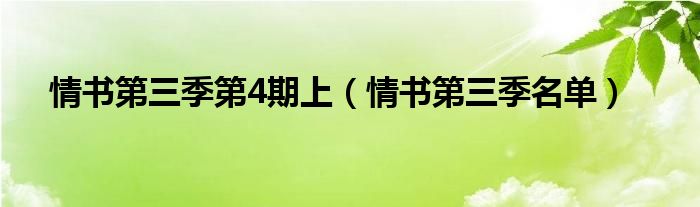 情书第三季第4期上,情书第三季名单这个很多人还不知道,小飞来为大家解答以上的问题。现在让我们一起来看看吧!