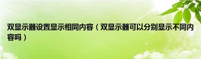 关于双显示器设置显示相同内容,双显示器可以分别显示不同内容吗这个很多人还不知道,今天菲菲来为大家解答以上的问题,现在让我们一起来看看吧!