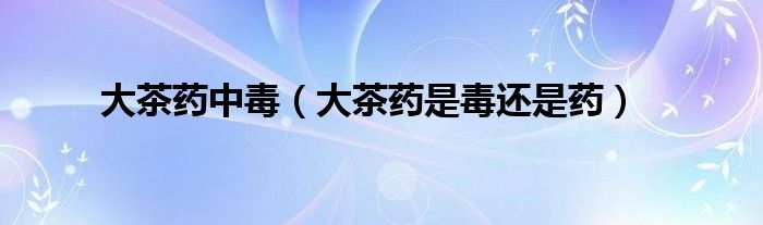 关于大茶药中毒,大茶药是毒还是药这个很多人还不知道,今天菲菲来为大家解答以上的问题,现在让我们一起来看看吧!