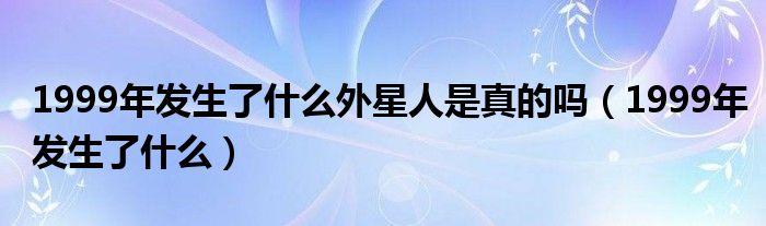 1999年发生了什么外星人是真的吗,1999年发生了什么这个很多人还不知道,小飞来为大家解答以上的问题。现在让我们一起来看看吧!