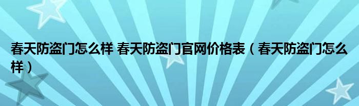 大家好,小晋来为大家解答以下问题,关于春天防盗门怎么样 春天防盗门官网价格表,春天防盗门怎么样很多人还不知道,今天让我们一起来看看吧!