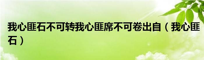 大家好,小晋来为大家解答以下问题,关于我心匪石不可转我心匪席不可卷出自,我心匪石很多人还不知道,今天让我们一起来看看吧!
