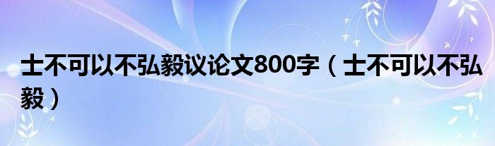 大家好,小晋来为大家解答以下问题,关于士不可以不弘毅议论文800字,士不可以不弘毅很多人还不知道,今天让我们一起来看看吧!