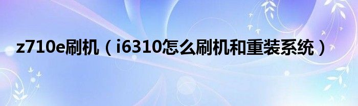 大家好,小常来为大家解答以上问题。z710e刷机,i6310怎么刷机和重装系统很多人还不知道,现在让我们一起来看看吧!