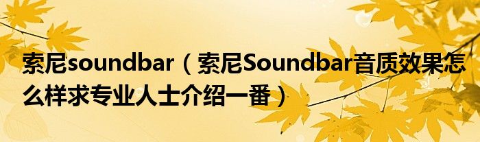 大家好,小常来为大家解答以上问题。索尼soundbar,索尼Soundbar音质效果怎么样求专业人士介绍一番很多人还不知道,现在让我们一起来看看吧!