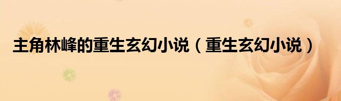 大家好,小晋来为大家解答以下问题,关于主角林峰的重生玄幻小说,重生玄幻小说很多人还不知道,今天让我们一起来看看吧!