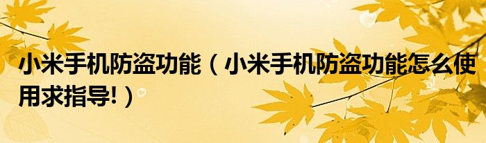1,小米手机防盗功能怎么使用求指导! :嗨!你好,你开启了手机找回功能,当你的手机被盗换卡的时候会向你绑定的号码发送信息的更详细的描述问题有助于网友理解你遇到的麻烦,帮助你更准确的解决问题。谢谢你支持小米手机!