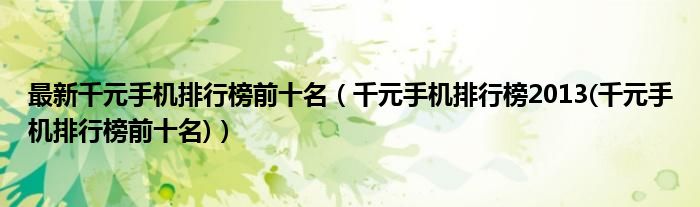 大家好,小常来为大家解答以上问题。最新千元手机排行榜前十名,千元手机排行榜2013(千元手机排行榜前十名)很多人还不知道,现在让我们一起来看看吧!