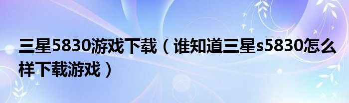 大家好,小常来为大家解答以上问题。三星5830游戏下载,谁知道三星s5830怎么样下载游戏很多人还不知道,现在让我们一起来看看吧!