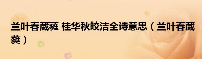 大家好,小晋来为大家解答以下问题,关于兰叶春葳蕤 桂华秋皎洁全诗意思,兰叶春葳蕤很多人还不知道,今天让我们一起来看看吧!