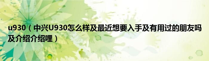 大家好,小常来为大家解答以上问题。u930,中兴U930怎么样及最近想要入手及有用过的朋友吗及介绍介绍哩很多人还不知道,现在让我们一起来看看吧!
