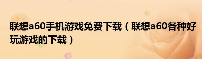 1,联想a60各种好玩游戏的下载:推荐去安致网,要玩什么游戏直接搜,注意,如果是大型游戏,在搜索结果中一定要选择带数据包的那种,下载完了就解压,把APK文件直接安装,把数据包放在指定位置既可,我也是A60,如果你内存够大的话,推荐你去玩:实况足球2011(虽然有2012版的,到我觉得还是2011好,约101MB)不朽的神迹(这游戏玩起来很爽,到时候你去看截图就知道了,约1.02GB!!!)等等……包括都市赛车都有,我都能玩,如果还是没弄好的话,可以加Q详谈,919120367