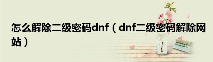 关于怎么解除二级密码dnf,dnf二级密码解除网站这个很多人还不知道,今天菲菲来为大家解答以上的问题,现在让我们一起来看看吧!