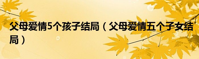 大家好,小晋来为大家解答以下问题,关于父母爱情5个孩子结局,父母爱情五个子女结局很多人还不知道,今天让我们一起来看看吧!