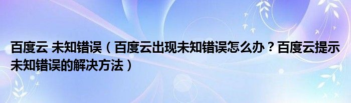 百度云出现未知错误怎么办?百度云出现未知错误一般是由于以下原因所至: