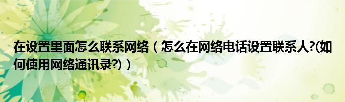 大家好,今天小悦来为大家解答以上问题。在设置里面怎么联系网络,怎么在网络电话设置联系人?(如何使用网络通讯录?)很多人还不知道,现在让我们一起来看看吧!