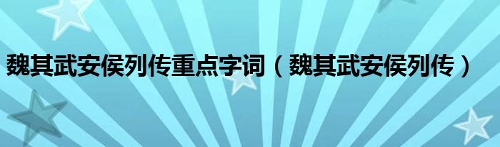 关于魏其武安侯列传重点字词,魏其武安侯列传这个很多人还不知道,今天菲菲来为大家解答以上的问题,现在让我们一起来看看吧!