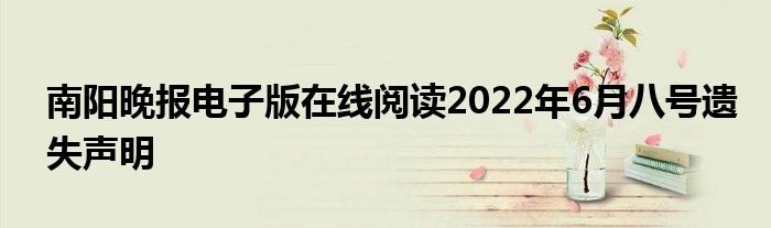关于南阳晚报电子版在线阅读2022年6月八号遗失声明这个很多人还不知道,今天菲菲来为大家解答以上的问题,现在让我们一起来看看吧!