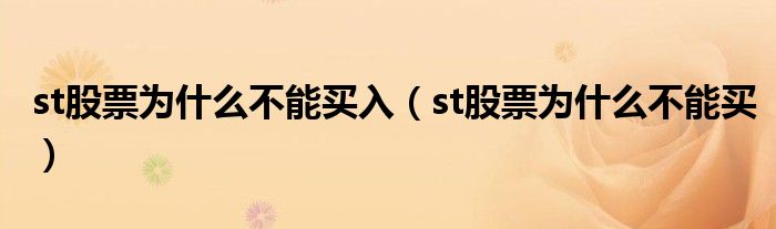 关于st股票为什么不能买入,st股票为什么不能买这个很多人还不知道,今天菲菲来为大家解答以上的问题,现在让我们一起来看看吧!