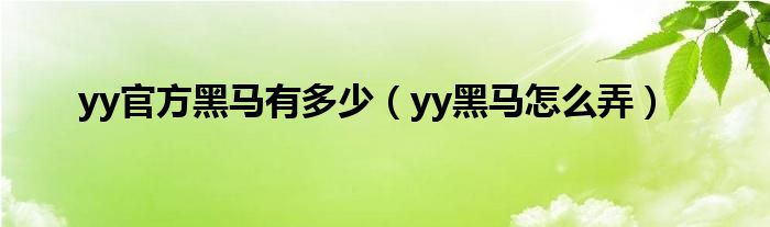yy官方黑马有多少(yy黑马怎么弄)