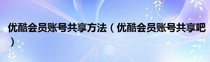 大家好,雨雨来为大家解答以上问题,优酷会员账号共享方法,优酷会员账号共享吧很多人还不知道,现在让我们一起来看看吧!