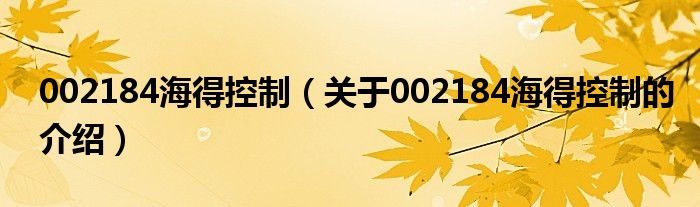 大家好,今天小乐来为大家解答以上的问题。002184海得控制,关于002184海得控制的介绍很多人还不知道,现在让我们一起来看看吧!