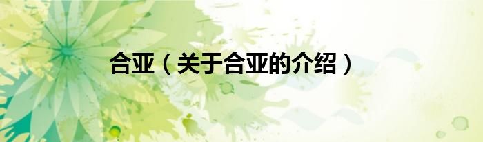 大家好,今天小乐来为大家解答以上的问题。合亚,关于合亚的介绍很多人还不知道,现在让我们一起来看看吧!