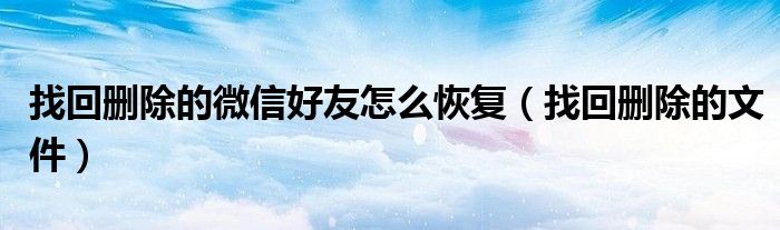 大家好,雨雨来为大家解答以上问题,找回删除的微信好友怎么恢复,找回删除的文件很多人还不知道,现在让我们一起来看看吧!