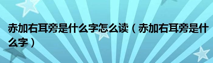 关于赤加右耳旁是什么字怎么读,赤加右耳旁是什么字这个很多人还不知道,今天菲菲来为大家解答以上的问题,现在让我们一起来看看吧!