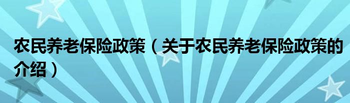 农民养老保险政策(关于农民养老保险政策的介绍)