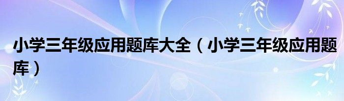 关于小学三年级应用题库大全,小学三年级应用题库这个很多人还不知道,今天菲菲来为大家解答以上的问题,现在让我们一起来看看吧!