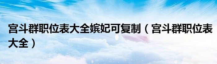 大家好,小晋来为大家解答以下问题,关于宫斗群职位表大全嫔妃可复制,宫斗群职位表大全很多人还不知道,今天让我们一起来看看吧!