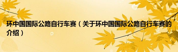 大家好,今天小乐来为大家解答以上的问题。环中国国际公路自行车赛,关于环中国国际公路自行车赛的介绍很多人还不知道,现在让我们一起来看看吧!