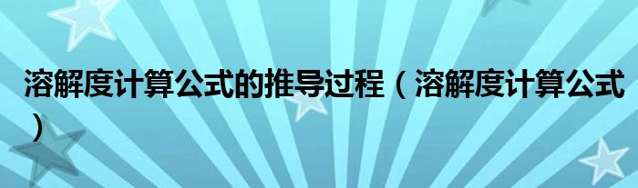 关于溶解度计算公式的推导过程,溶解度计算公式这个很多人还不知道,今天菲菲来为大家解答以上的问题,现在让我们一起来看看吧!