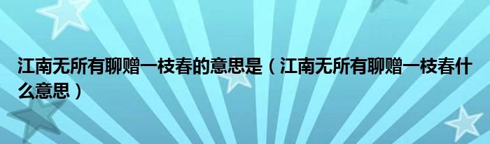 关于江南无所有聊赠一枝春的意思是,江南无所有聊赠一枝春什么意思这个很多人还不知道,今天菲菲来为大家解答以上的问题,现在让我们一起来看看吧!