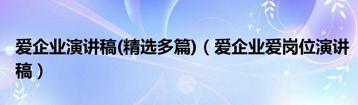 关于爱企业演讲稿(精选多篇),爱企业爱岗位演讲稿这个很多人还不知道,今天菲菲来为大家解答以上的问题,现在让我们一起来看看吧!