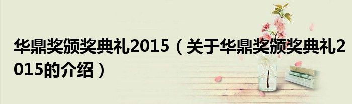 大家好,今天小乐来为大家解答以上的问题。华鼎奖颁奖典礼2015,关于华鼎奖颁奖典礼2015的介绍很多人还不知道,现在让我们一起来看看吧!