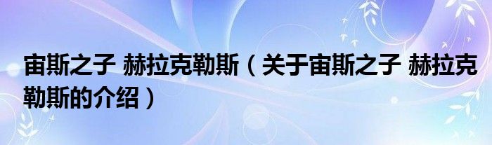宙斯之子 赫拉克勒斯(关于宙斯之子 赫拉克勒斯的介绍)