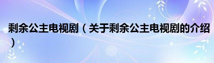 剩余公主电视剧(关于剩余公主电视剧的介绍)