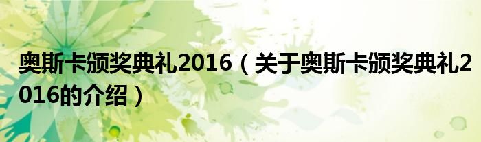 大家好,今天小乐来为大家解答以上的问题。奥斯卡颁奖典礼2016,关于奥斯卡颁奖典礼2016的介绍很多人还不知道,现在让我们一起来看看吧!