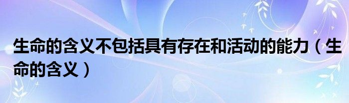 关于生命的含义不包括具有存在和活动的能力,生命的含义这个很多人还不知道,今天菲菲来为大家解答以上的问题,现在让我们一起来看看吧!